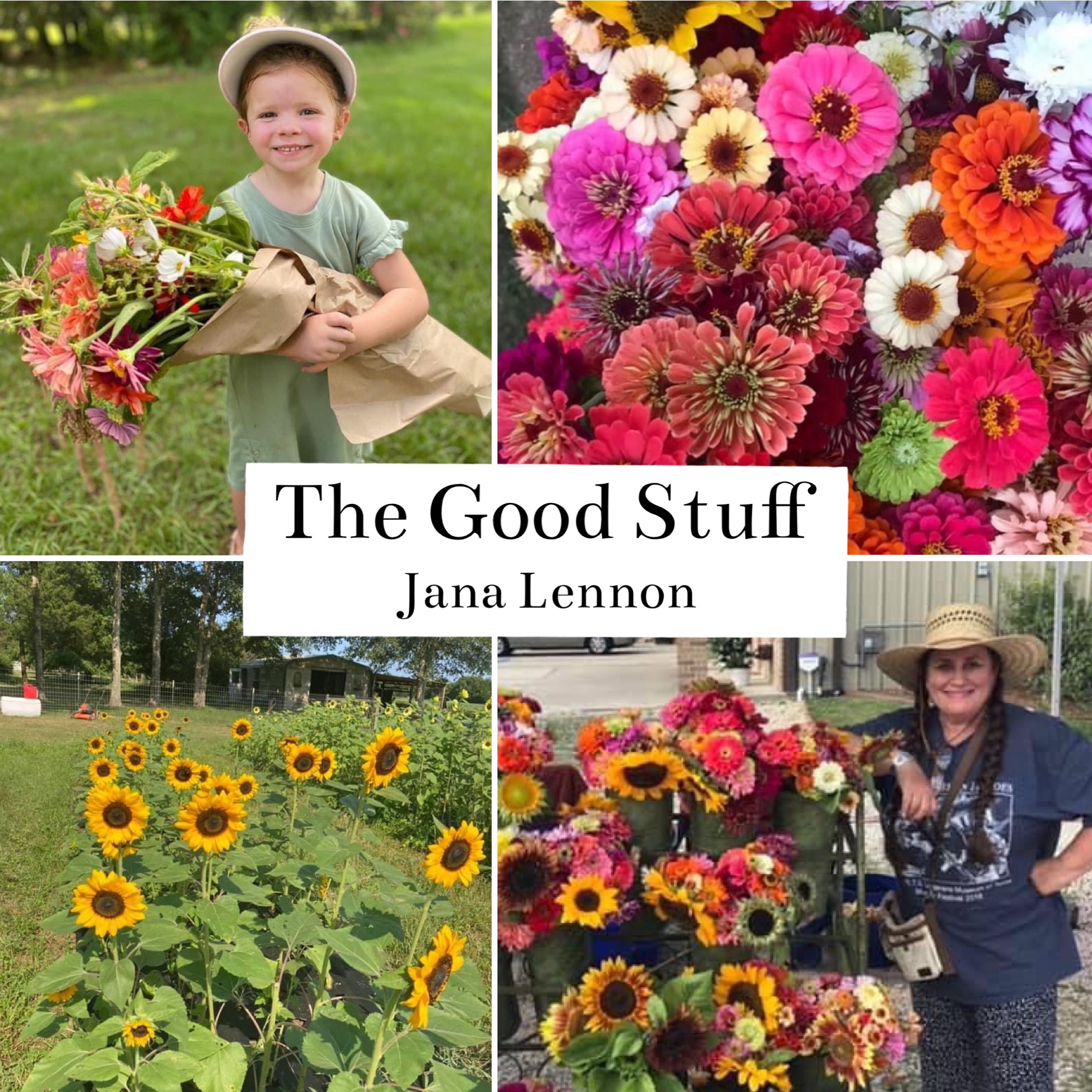 - The Good Stuff: Jana Lennon with her husband owns and operates a gorgeous floral farm in Conroe. Pick your own flowers and make beautiful bouquets a when you visit her farm. She also sells produce such as purple hull peas and strawberries. Her flower fields open in May. Follow her on Facebook and check out her gorgeous flowers. She has just recently opened up a wedding venue on the property.