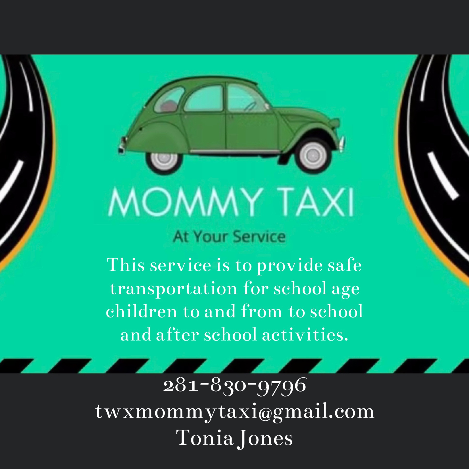 - Mommy Taxi: Get help with taking and picking up your school aged children to school and after school activities. Connect with Tonia RolleJones and allow her to help you manage your childrens’ taxi needs. Connect with her on Facebook.