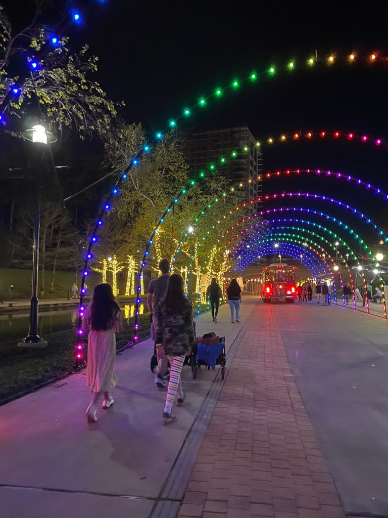 One of the most magical sights each year is the stunning illumination along The Woodlands Waterway. The trees sparkle, the bridges glow, and reflections dance on the water, making it a peaceful place for a nighttime stroll.