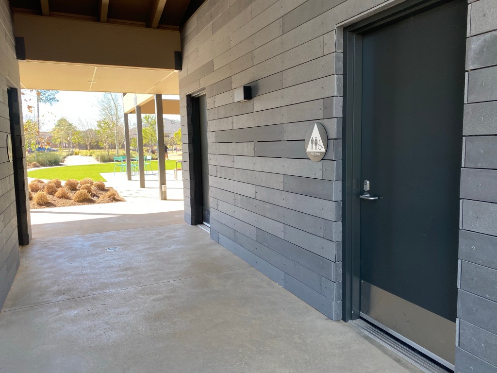 The new park also has a turf lawn leading to a pavilion and picnic area with family restrooms and hands free toilets, sinks and soap.