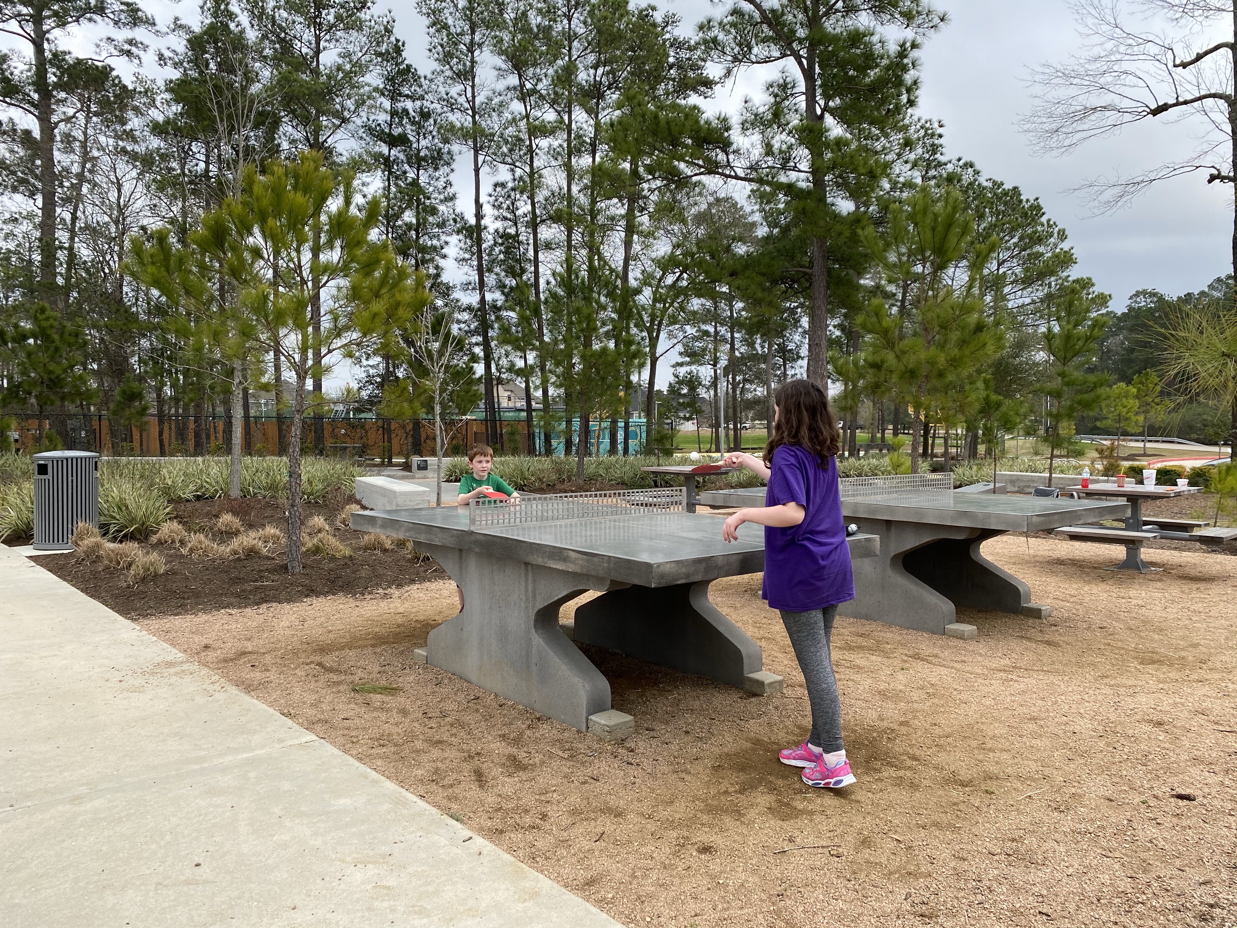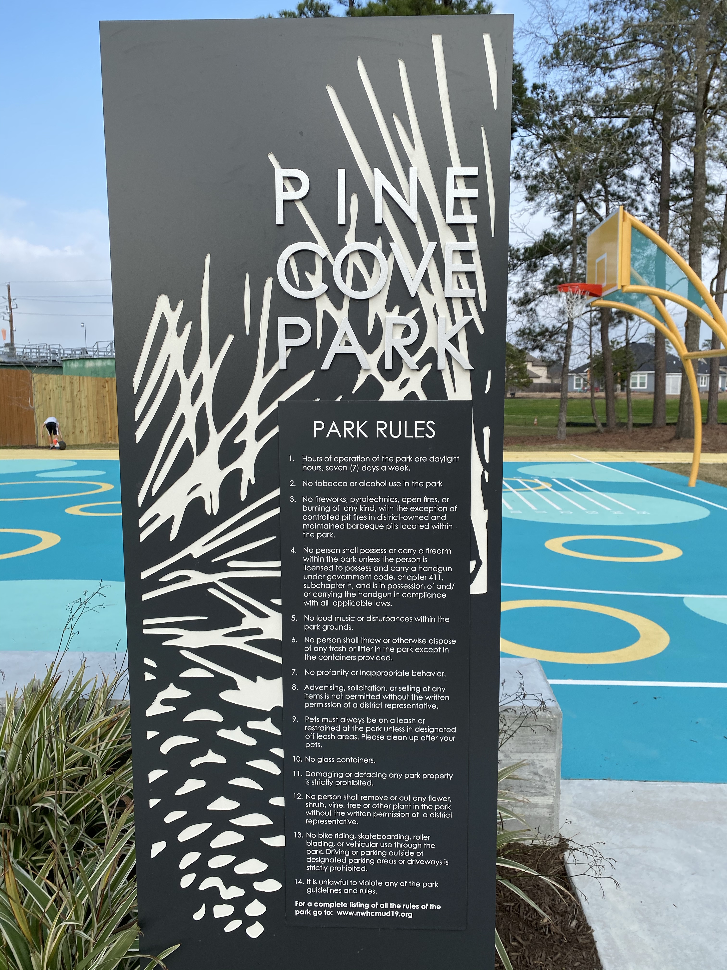 Pine Cove Park does have a parking lot along with a basketball court, concrete ping pong and foosball tables.